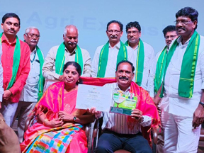 Sri K. Purushotham Naidu receiving Padma Sri Dr. I.V. Subba Rao Raithu Nestham award 2022 |