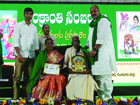 Sri K. Purushotham Naidu from Mittur Village of RC Puram mandal received "Best farmer award" during Sankranthi Sambaralu |